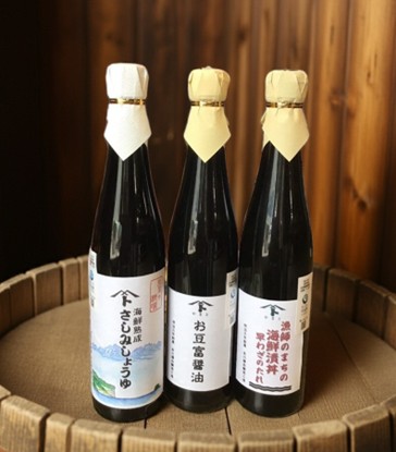 海鮮熟成さしみしょうゆ、海鮮漬丼早わざのたれ、お豆富醤油